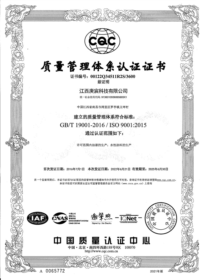 质量管理体系认证证书